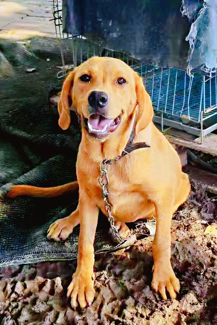 她在犬留所里被拴在树上,楚楚可怜。和工作人员了解后才知道,她和她的好姐妹(漂亮的巧克力色的拉布拉多)娜娜被主人亲自送到了犬留所。虽然不知道为什么狠心的主人遗弃了它们,唯一能确定的是:两只漂亮的狗狗没有家了。那时候的她们只有6-7个月大,正是狗子们最需要被疼爱的时候…